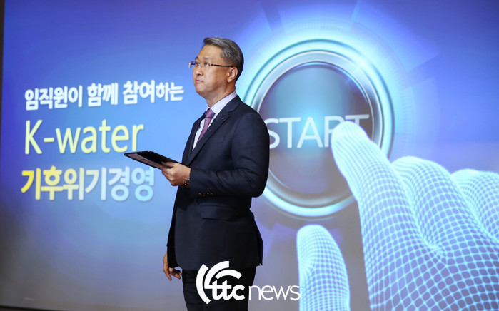 | ▲ 한국수자원공사 박재현 사장이 지난해 11월 ‘기후위기 대응’ ‘국민 중심의 물관리 혁신’을 다짐하고, 공공기관 최초로 RE100 참여계획을 발표하고 있다.(자료사진=한국수자원공사 제공) |