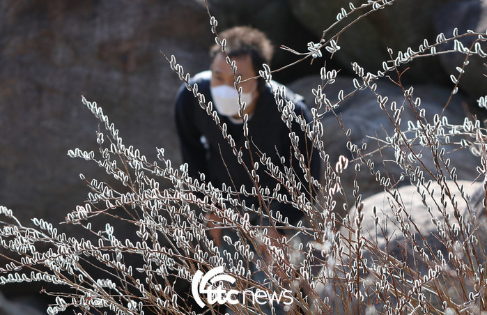 | ▲ 16일 경남 함양군 마천면 금계마을 앞 엄천강에서 봄 기운을 머금고 반짝반짝 빛나는 버들강아지를 한 시민이 바라보고 있다.(사진=함양군 김용만 주무관 제공) |