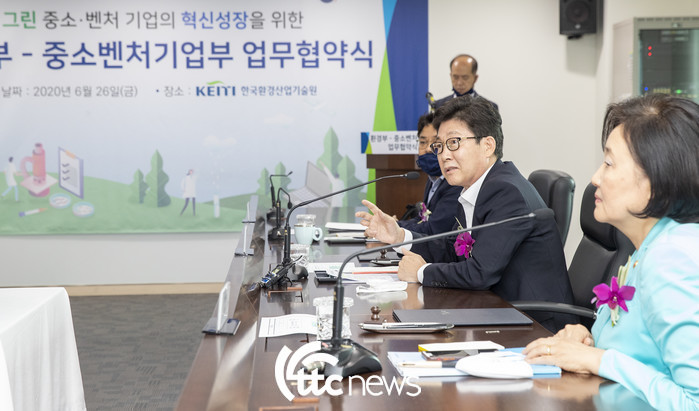 환경부와 중기부는 26일 오전 서울 은평구 한국환경산업기술원에서 ‘그린뉴딜’ 정책을 상호 협력하기 위한 업무협약을 체결했다고 밝혔다.