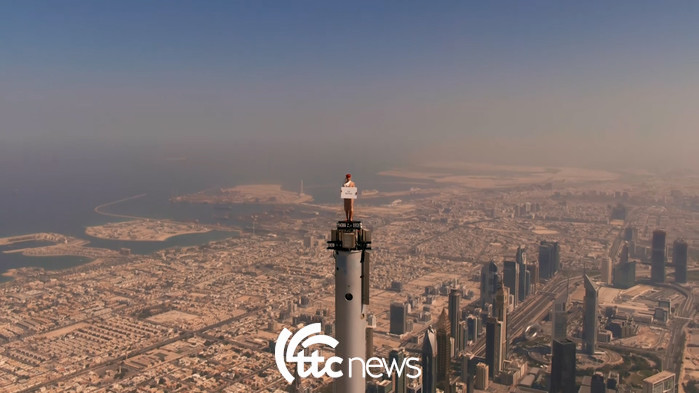 에미레이트 항공이 세계에서 가장 높은 빌딩인 부르즈 칼리파의 끝 지점, 지상에서 약 828m 높이에 우뚝 서 있는 승무원의 모습을 담은 새로운 광고를 공개했다.