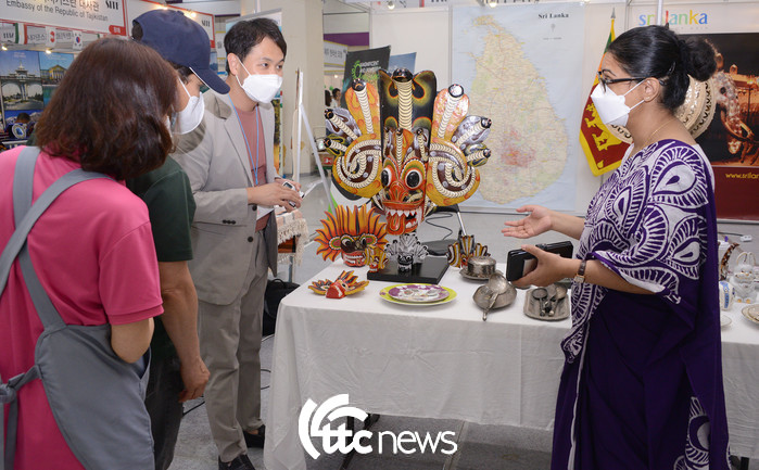 | ▲ 주한스리랑카 대사관 레이카 말리카라치 상무관(오른쪽)이 관람객들에게 스리랑카의 문화를 설명하고 있다. |