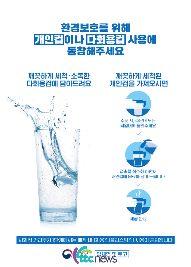이번 협약의 주요 내용은 먼저, 1회용품 사용이 많은 커피전문점 등은 코로나19 확산 방지를 위해 다회용컵을 충분히 세척·소독하는 등 위생관리를 강화하고, 개인컵은 접촉을 최소화하여 음료를 제공하는 등 매장 내 다회용컵·개인컵을 우선 사용하기로 했다.