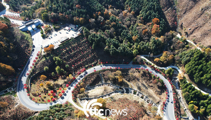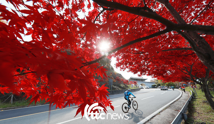 31일 경남 함양군 오도재 단풍길이 깊어가는 가을색으로 붉게 물들어 있다.