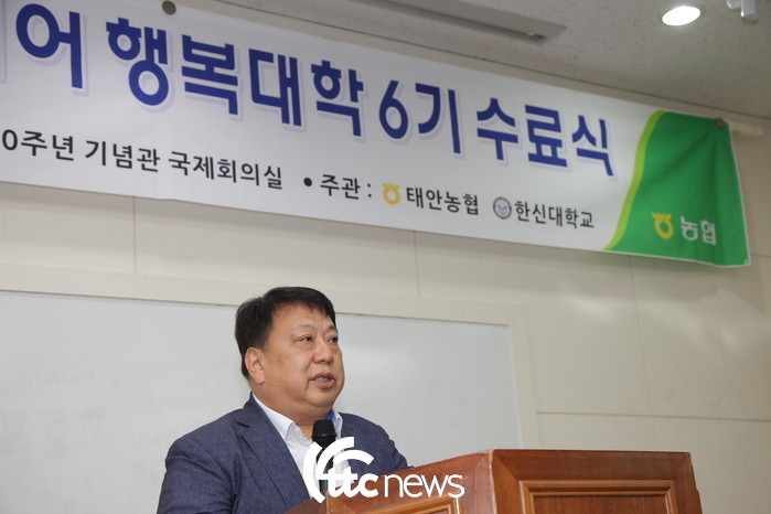 김형규 태안농협 조합장은 수료생들에게 축하인사를 전하며 “태안농협은 올해가 ‘새로운 50년, 함께하는 100년’을 시작하는 원년이다. 지난 50년간 지역사회와 태안농협의 발전을 위해 애써온 조합원 여러분께 감사드린다. 여러분 덕분에 태안농협이 발전할 수 있었다”고 말했다.