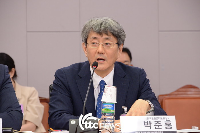 | ▲ 한국하천학회장인 박창근 관동대 교수가 9일 국회의원회관에서 개최된 ‘물순환 입법정책토론회’의 좌장이 되어 토론을 진행하고 있다. |