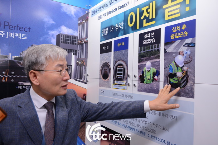 특히, ㈜퍼팩트의 ‘맨홀키퍼(Keeper)’ 제품은 장마철 집중 강우로 인한 맨홀뚜껑 개방 인명사고 문제를 해결할 수 있다는 점에서 관람객들의 큰 관심을 모았다. ‘맨홀키퍼’는 접이식 안전손잡이 및 안전판 설치 등을 통해 맨홀 내 작업자와 보행자의 추락을 방지할 수 있고, 최대 450kg 이상의 최대 버팀 하중을 견딜 수 있는 구조로 공인기관인 한국화학융합시험연구원의 품질규격 확인, 기술개발 제품 특허를 취득 하였다