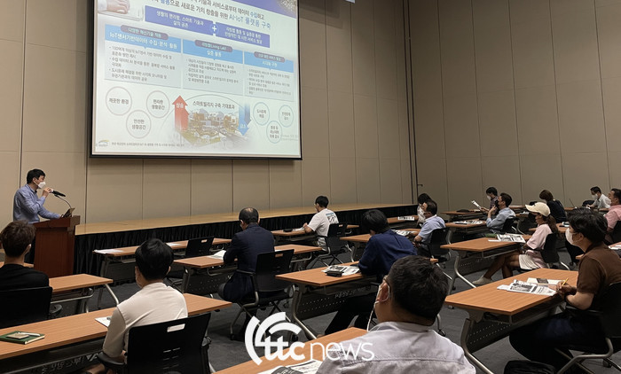 | ▲ 한국수자원공사가 26일 부산항국제전시컨벤션센터(BPEX)에서 ‘부산 에코델타 스마트시티·어반테크 MEET-UP DAY’를 열어 어반테크하우스 입주 및 운영계획을 설명하고 있다.(사진=한국수자원공사 제공) |