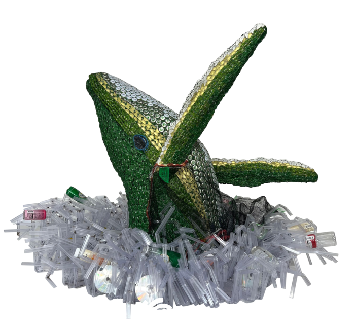 정크아트 앤 업사이클링 분야 대상인 ‘고래가 수면 위로 올라오는 이유’는 병뚜껑을 기반으로 다양한 폐자원을 활용해 환경 보호의 중요성을 역동적이고 재치 있게 표현했다.