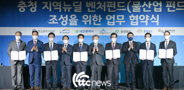먼저, 수자원공사는 중소벤처기업부 및 한국벤처투자, 대전광역시, 세종특별자치시, 충청북도, 충청남도와 함께 ‘충청 지역뉴딜 벤처펀드’ 조성과 벤처투자 활성화를 위한 업무협약을 체결했다.