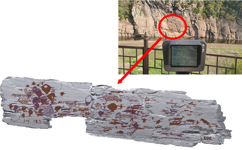 | ▲ 신석기 시대 제작 추정되는 반구대 암각화는 71. 12. 25 발견되었고 95년 6월 국보 제 285호로 지정되었다. 폭 10m, 높이 4m의 암면에 바다·육지동물 등 300여점 그림이 확인되었다. |
