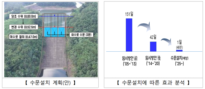 수위 조절과 홍수기 침수 예방을 위한 근본 대책으로 사연댐에 폭15m×높이6m의 수문 3개를 설치할 계획이다.
