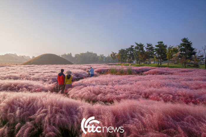 | ▲ 전남-경북 관광사진 공동전시회- (금상)노명희-고분과핑크뮬리(나주) |