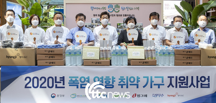 이와 관련해 시민단체인 한국기후환경네트워크, 빙그레 · BGF리테일 · 제주개발공사 · 형지I&C 등의 기업과 한국환경산업기술원이 전국 53개 시군구의 취약가구 2천여 곳에 생수, 쿨매트, 토시, 수건, 부채 등 폭염대응물품을 지원한다.