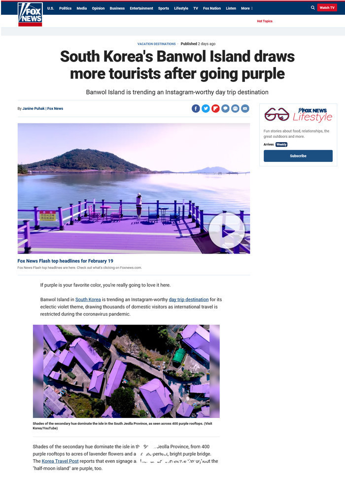 | ▲ 폭스뉴스에 소개된 퍼플섬 |