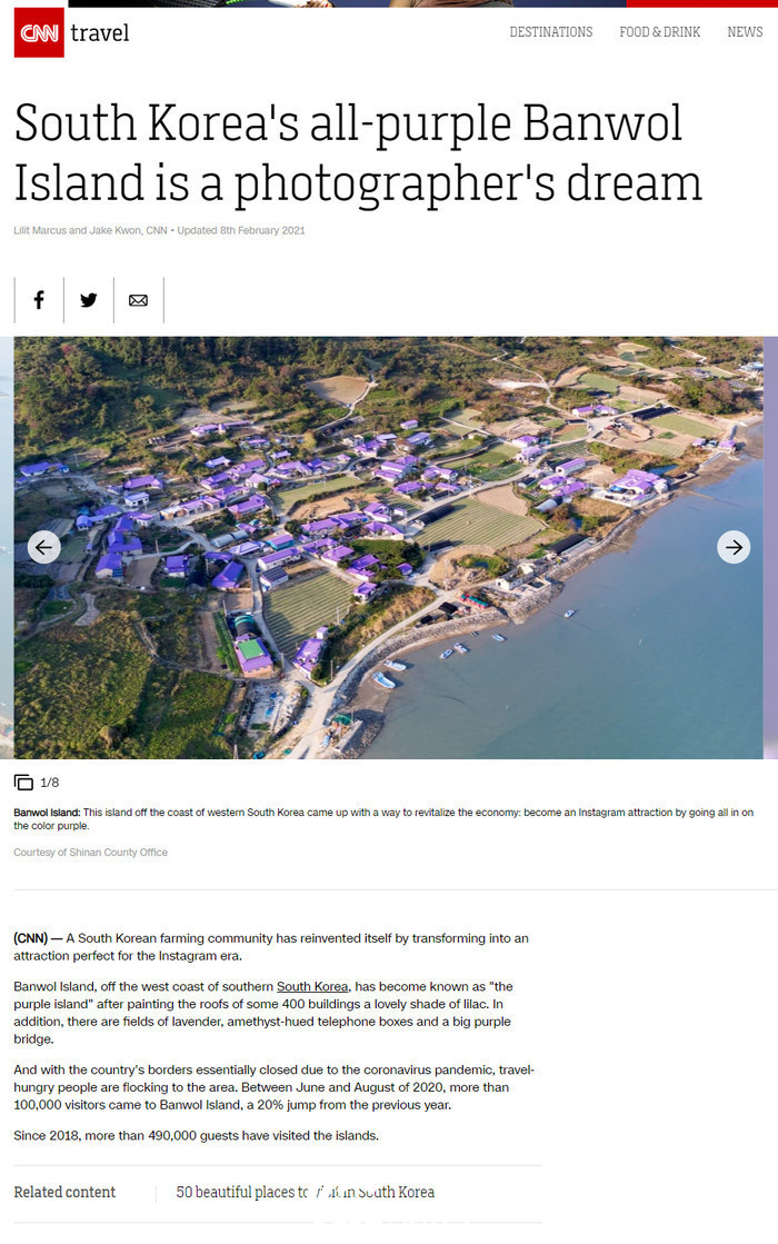 지난 8일 CNN은 반월도를 “사진작가들의 꿈의 섬”이라고 소개하면서 8장의 사진과 함께 “퍼플섬”의 여행 관련 소식을 전했다.
