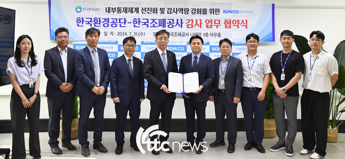 한국환경공단(상임감사 홍성환)은 한국조폐공사(상임감사 김범진)와 31일 대전광역시 유성구 소재 한국조폐공사 본사에서 감사업무 협력체계 구축을 위한 업무협약을 체결했다.