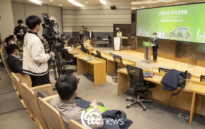 | ▲ 환경부와 금융위원회, 기획재정부는 11월 26일 오후 여의도 산업은행 아이알(IR) 센터에서 그린뉴딜(친환경미래차·녹색산업 분야) 투자설명회를 와 공동주관했다. |