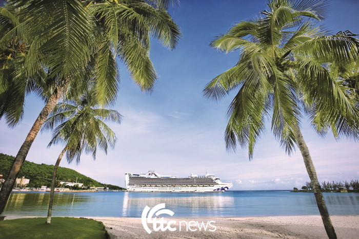 | ▲ 프린세스 크루즈 전용 섬 리조트인 프린세스 케이스에 정박중인 프린세스 크루즈 (사진=프린세스 크루즈 한국지사 제공) |