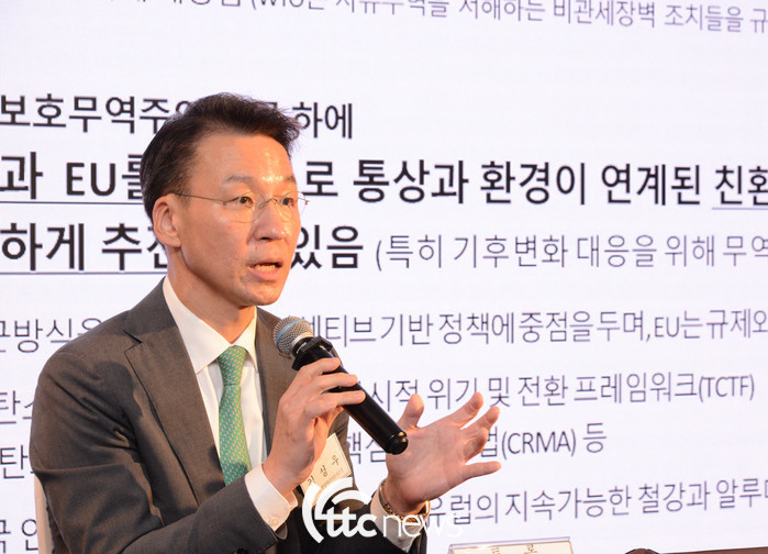 이어서 김성우 김앤장법률사무소 환경에너지연구소장은 ‘기후-통상 연계에 따른 기술 확보 방안’을 중심으로 토론했다.
