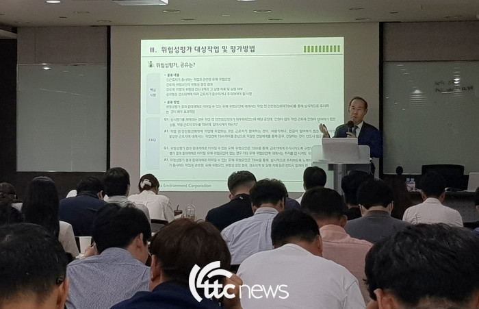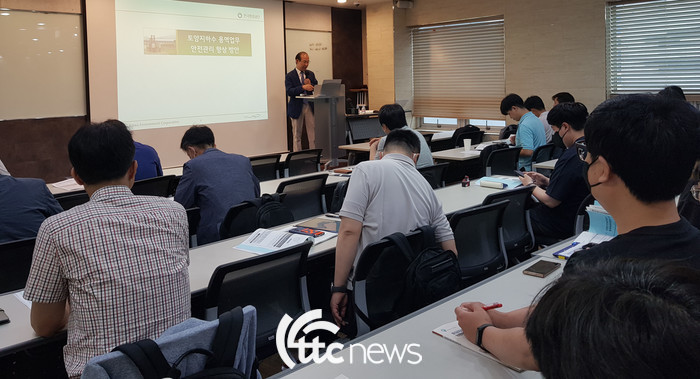 | ▲ 한국환경공단이 26일 서울역 인근 삼경교육센터에서 안전관리에 어려움을 겪고 있는 25개 토양지하수 오염조사·정화기업 관계자 80여명에게 안전역량강화 컨설팅을 실시하고 있다(사진=한국환경공단 제공) |