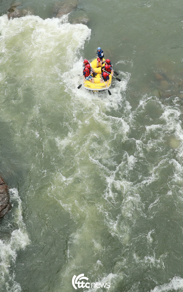 11일 경남 함양군 휴천면 엄천강에서 래프팅 동호인들이 여름 물살을 가르며 래프팅을 즐기고 있다.