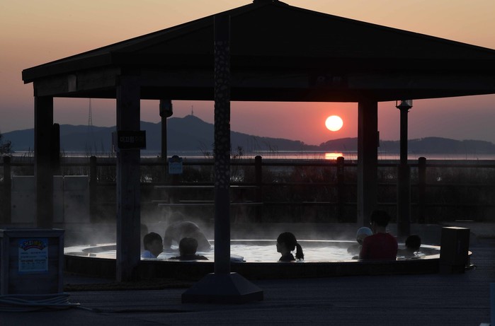 ① 수증기 너머로 지는 기해년 붉은 해 ‘인천 석모도 미네랄온천’