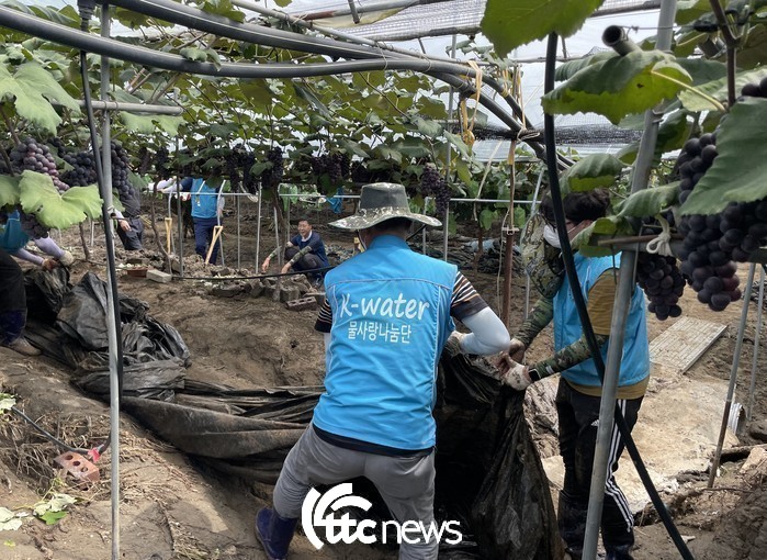 또한, 지난 19일에는 한국수자원공사 충남중부권지사 임직원 봉사단이 충남 부여군 은산면을 방문하여 포도밭 토사 제거 등 수해복구 활동을 함께했다.