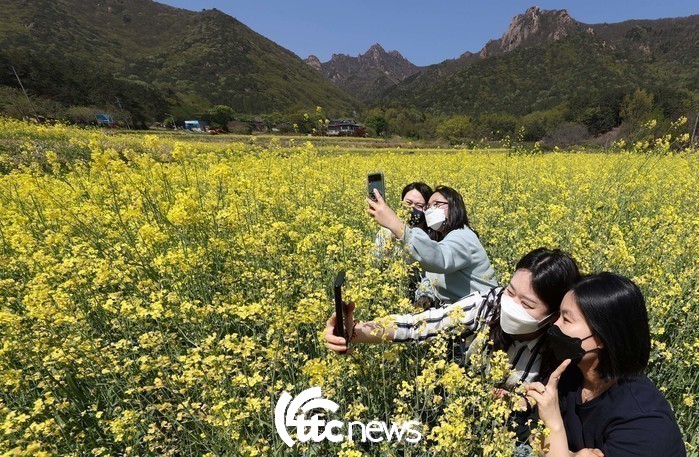 | ▲ 20일 전남 강진군 성전면 월남마을 유채밭에서 시민들이 봄 추억을 만들고 있다(사진=강진군 제공) |