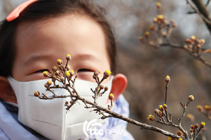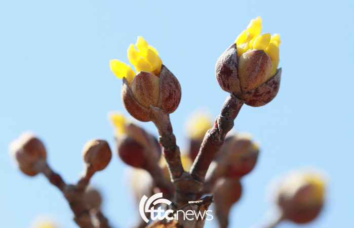 24절기 중 세 번째 절기인 경칩(驚蟄)을 사흘 앞둔 2일 경남 함양군 하림공원에서 봄기운을 가득 머금은 산수유가 노란 꽃망울을 터트리고 있다.