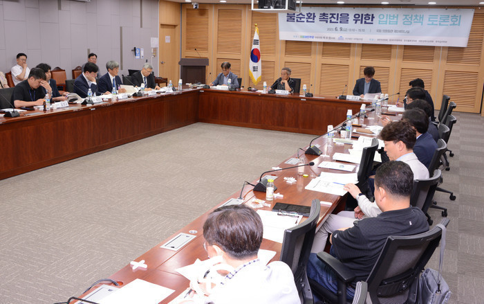 ▲ 한국물순환협회는 시화국가산단 재생사업 추진과정에 있어 법적 의무사항인 생태면적률을 적극적으로 확보하여 시화국가산단이 ‘친환경 선도 산업단지’로 거듭날 수 있도록 정책대안을 모색하기 위해오는 26일 오후 경기도 시흥시 소재 시흥창업센터 1층 다목적홀에서 ‘찾아가는 지역 세미나 – 시흥시 편’을 개최한다.(티티씨뉴스 자료사진=지난 6월 국회에서 개최된 물순환 촉진을 위한 입법 정책토론회 장면)