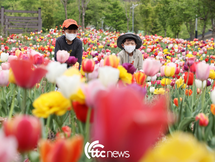 | ▲ 24일 경남 함양군 지리산 생태체험 단지에 튤립이 활짝폈다.(사진=함양군 김용만 주무관 제공) |