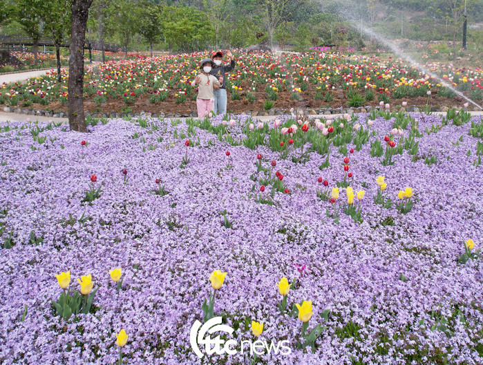 24일 지리산 자락인 경남 함양군 마천면 지리산생태체험단지에 튤립과 꽃잔디가 활짝 펴 화사한 봄 풍경을 선사하고 있다.
