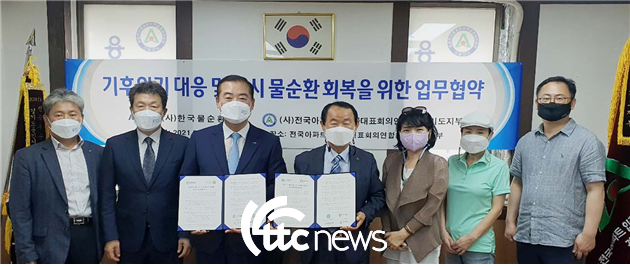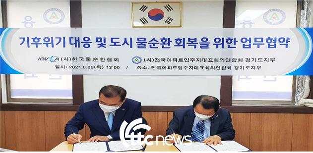 (사)한국물순환협회(회장 하승재)는 기후위기 대응을 위한 물순환 회복에 국민적 참여를 높이기 위해 26일 오후 경기도 용인시에 위치한 전국아파트입주자대표회의연합회 경기도지부(이하 연합회)에서 업무협약식을 개최했다.
