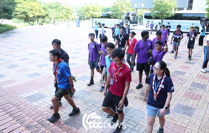 | ▲ 대전 소재 한국수자원공사 인재개발원에 도착해 이동하고 있는 싱가포르 스카우트 대표단 (사진=한국수자원공사 제공) |