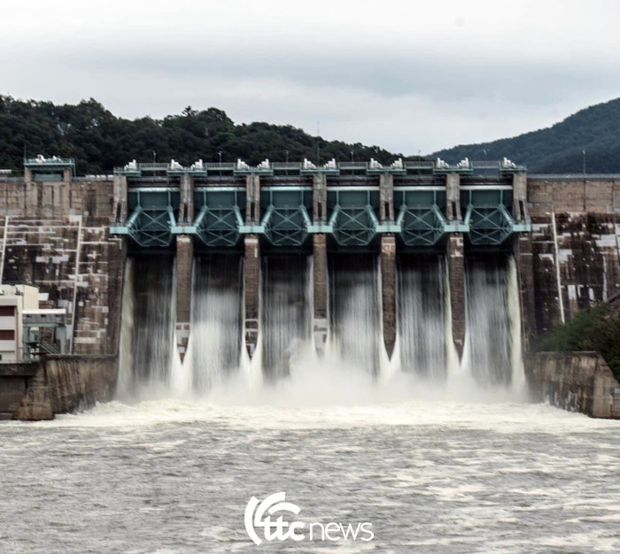 대청다목적댐이 31일 6개의 수문을 열고 초당 1800㎥ 이내의 방류를 실시하고 있다.
