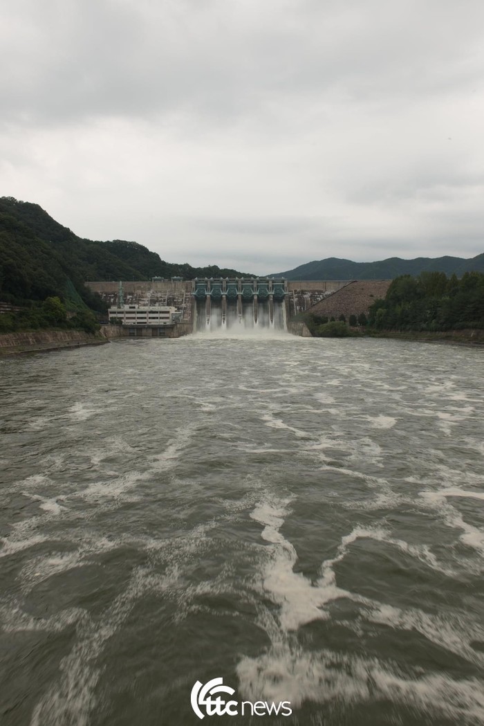 | ▲ 대청다목적댐이 31일 6개의 수문을 열고 초당 1800㎥ 이내의 방류를 실시하고 있다. 대전시 대덕구 미호동 대청교 위에서 본 대청다목적댐 방류 모습(사진 = 대전·장진원 통신원 제공) |