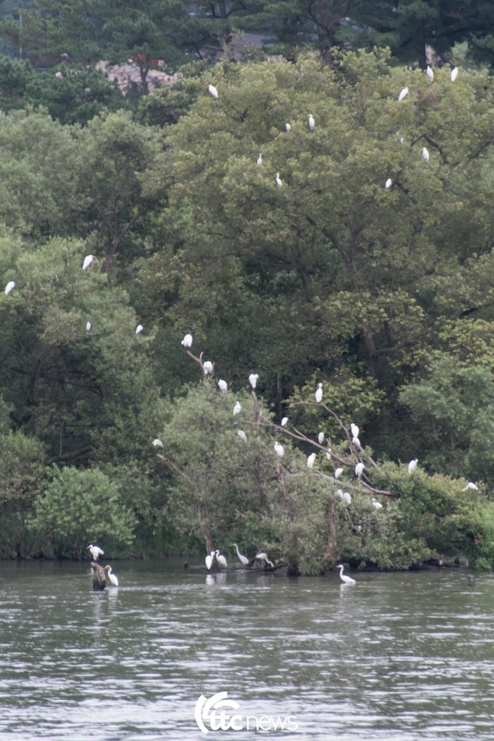 | ▲ 대청댐이 수문을 열고 방류를 시작하자 인근에 서식하는 백로, 왜가리들이 모여들었다(사진=대전·장진원 통신원 제공) |
