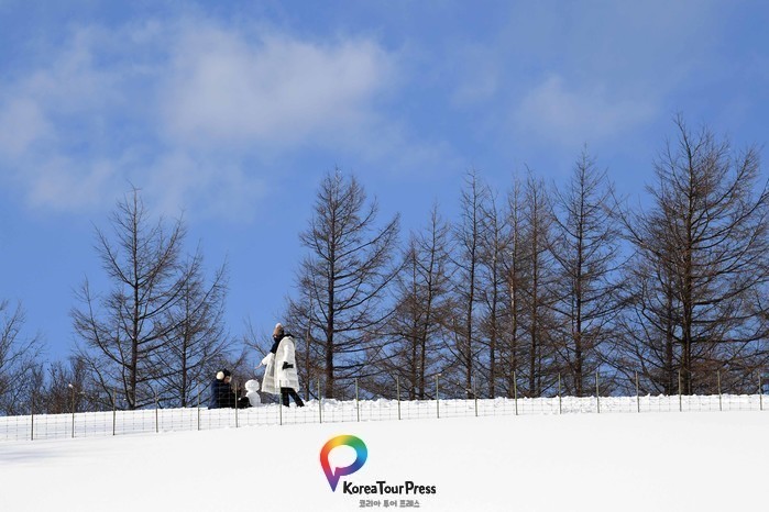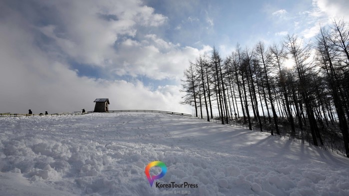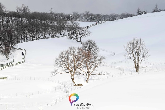아시아의 알프스로 불리는 6만2천여 평(204,959㎡)의 대관령 양떼목장에도 20cm가 넘는 눈이 쌓이면서 온통 은빛세상으로 옷을 갈아입었다.