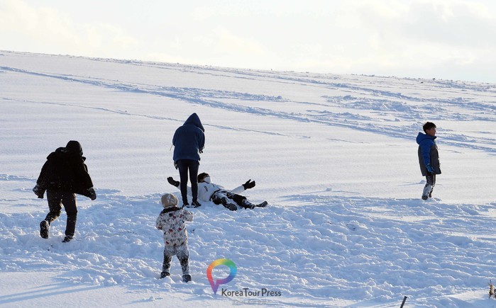 아이들은 눈밭을 뒹굴며 눈싸움을 하거나 눈썰매를 타며 즐거워하고 어른들도 추억 만들기에 여념이 없다.