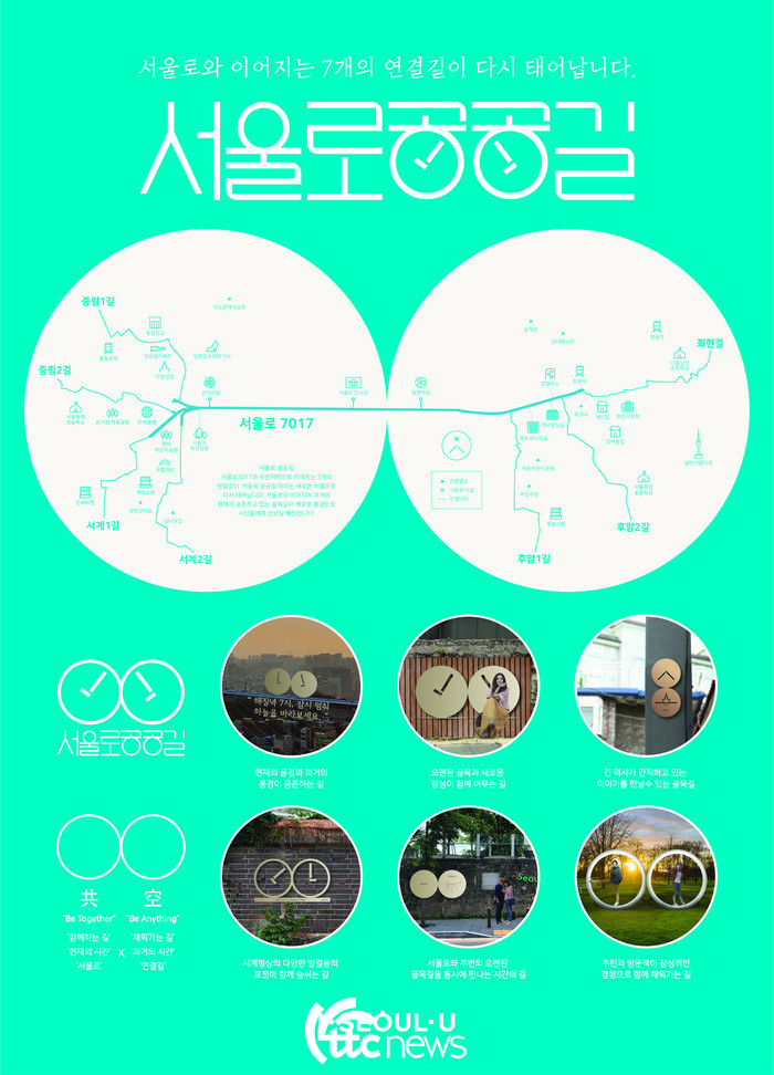 서울시는 서울로 7017에서 주변 지역으로 연결되는 총 7.6km의 7개 길의 이름을 '서울로공공길'로 정하고, 모든 길의 시설물 등에 공통적으로 적용될 통합브랜드를 21일 공개했다.