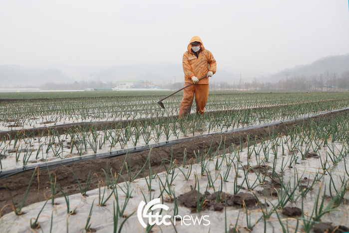 | ▲ 전국에 봄비가 내린 13일 경남 함양군 함양읍 한들에서 양파재배 농민 임재영(66)씨가 대지를 적시는 단비를 맞으며 기뻐하고 있다.(사진=함양군 김용만 주무관 제공) |