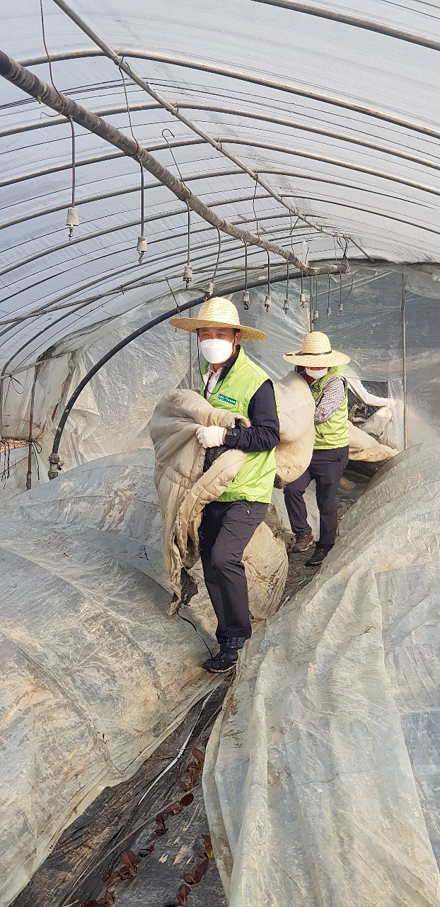 이날 농협유통 임직원 30여 명은 비닐하우스 만들기와 딸기 떡잎 제거 등을 통해 농촌일손을 거둘고 현장의 애로사항을 청취하였다.