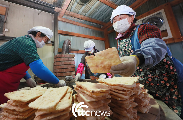 | ▲ 13일 경남 함양군 지곡면 개평한옥마을 작업장에서 직원들이 ‘자갈한과’를 만들고 있다.(사진=함양군 김용만 주무관 제공) |