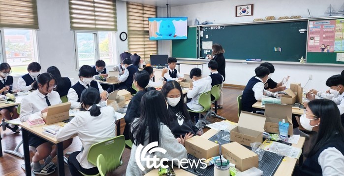 | ▲ K-water 부산울산경남 지역협력본부는 5일 함양군 안의중학교 학생 30명을 대상으로 물드림 캠프 교육 프로그램을 통해 물과 관련된 과학 이론, 친환경 수차발전기 모형 만들기 등 과학 창의실험을 진행했다. (사진=K-water부울경협력본부 제공) |