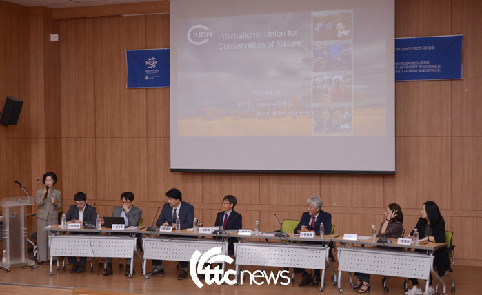 | ▲ IUCN 한국위원회 황은주 사무총장이"지구 환경의 당면한 생물다양성 보존, 기후변화, 지속가능한 발전의 정책 수립과 실행 협력 사업 추진을 하고 있다."고 소개하고 있다.. |