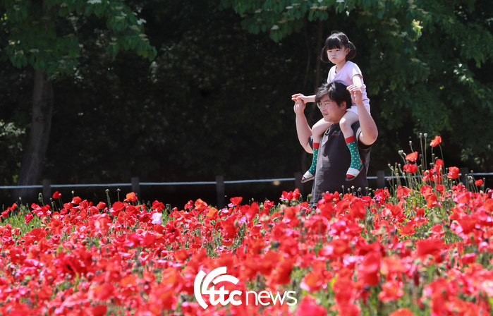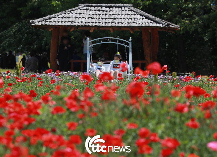 | ▲ 15일 경남 함양군 상림공원을 찾은 한 부녀가 활짝 핀 양귀비 꽃밭을 거닐며 봄볕을 즐기고 있다.(사진=함양군 김용만 주무관 제공) |