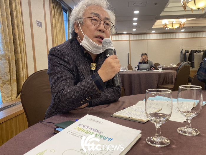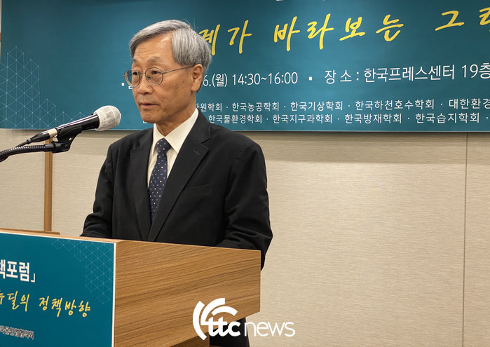 | ▲ 민경석 물학술단체연합회장은 16일 서울중구 프레스센터에서 개최된 '학계가 바라보는 그린뉴딜의 정책방향"포럼의 개회사를 통해 “마시지도 않는 물에 무슨 투자냐?”라는 반론이 상존하는 가운데 그린뉴딜은 국내 물산업이 국내에서 돌파구를 찾고 해외 글로벌 스탠다드로 가기 위한 절호의 기회라고 강조했다. |