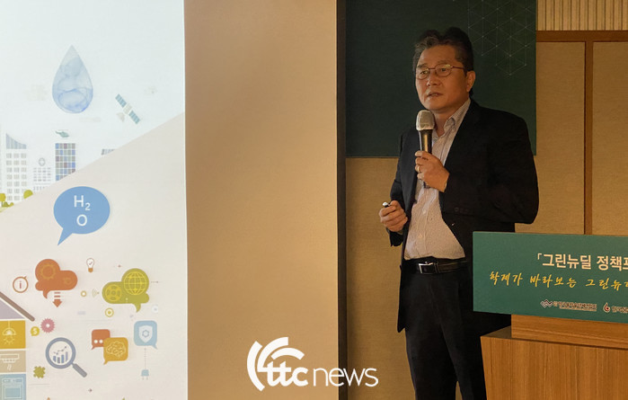 | ▲ 16일 오후 서울 중구 한국프레스센터에서 한국물학술단체연합회가 주최한 ‘학계가 바라보는 그린뉴딜의 정책 방향’ 포럼에서 성균관대 수자원전문대학원 염경택 교수가 ‘지능형 도시 수자원 관리’에 대한 다양한 비전을 제시하고 있다. |