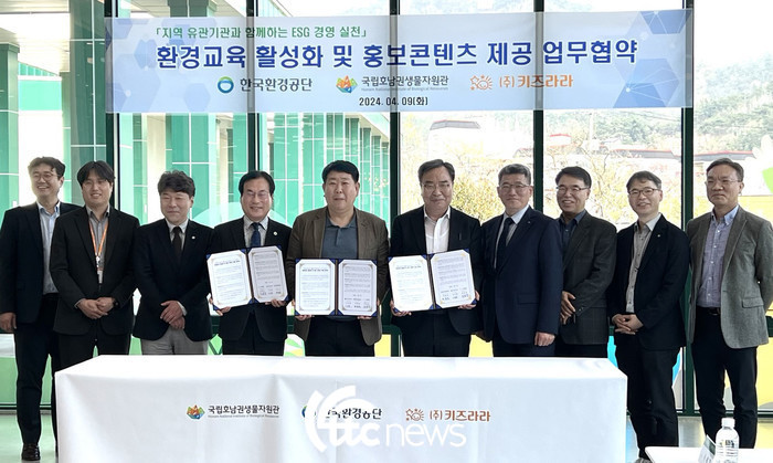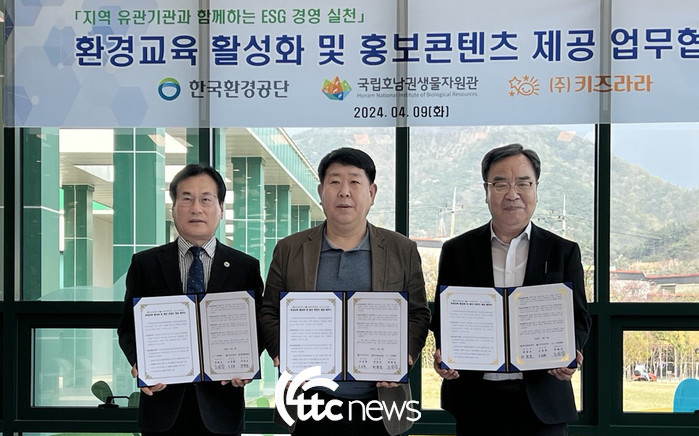 한국환경공단이 국립호남권생물자원관, ㈜키즈라라(이하, 협약기과)와 손 잡고, 미래세대를 위한 “환경교육 활성화 및 홍보콘텐츠 제공” 업무협약을 체결했다고 밝혔다.