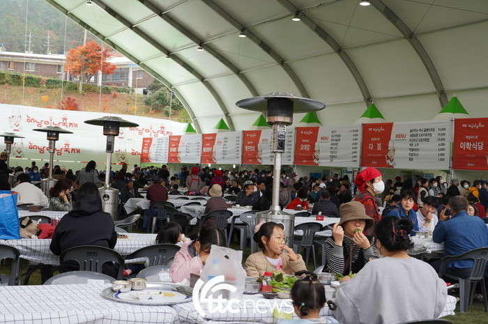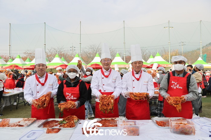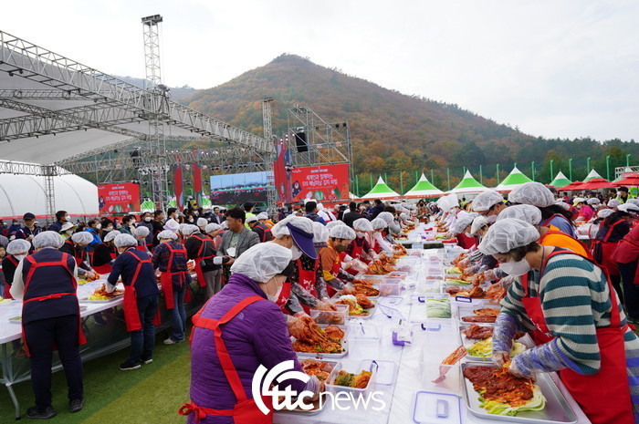 | ▲ 지난 11일부터‘오감만족 미식여행’을 주제로 두륜산 도립공원 일원에서 진행된 제4회 해남미남축제가 13일 성황리에 마무리 되었다. 사진은 해남 515개 마을에서 재배한 배추를 이용한 세계인과 함께하는 515 김치 비빔행사(사진=해남군 제공) |